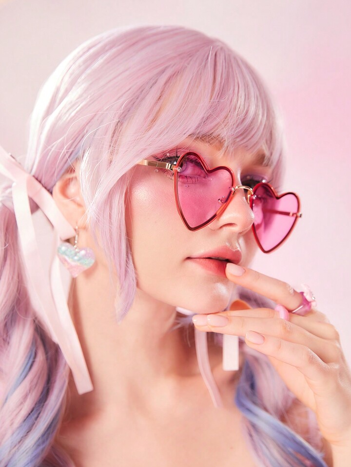 Kawaii 1pair Women Heart Frame Fashion Glasses Cute