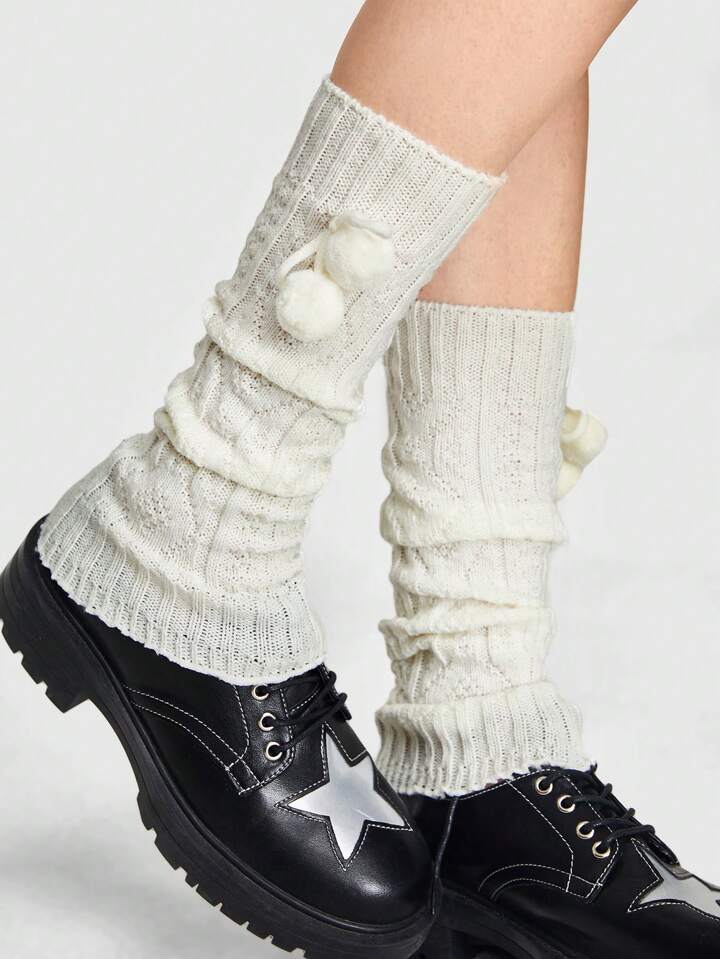 Kawaii 1pair Women Pom Pom & Bow Decor Leg Warmers