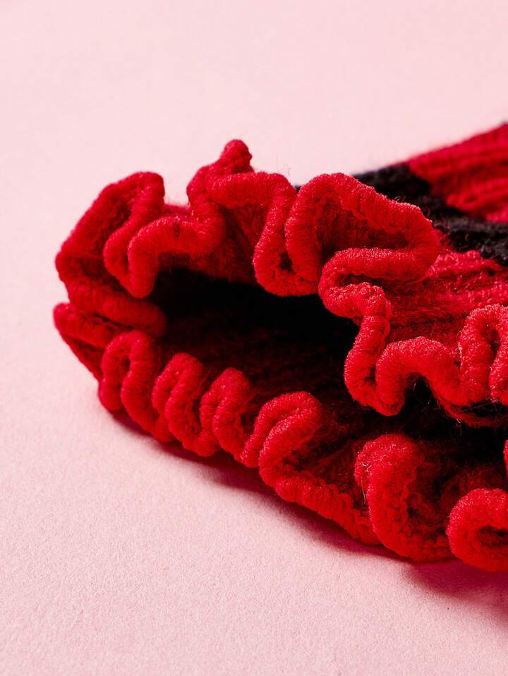 Kawaii 1pair Women Striped Pattern Release Buckle Decor Fashion Gloves For Daily Life