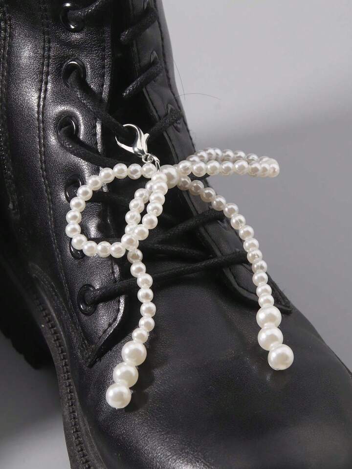 Kawaii 1pair Y2k Sweet & Cool Faux Pearl Bow Shoe Decoration, Festival Gift Fall