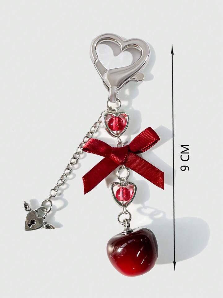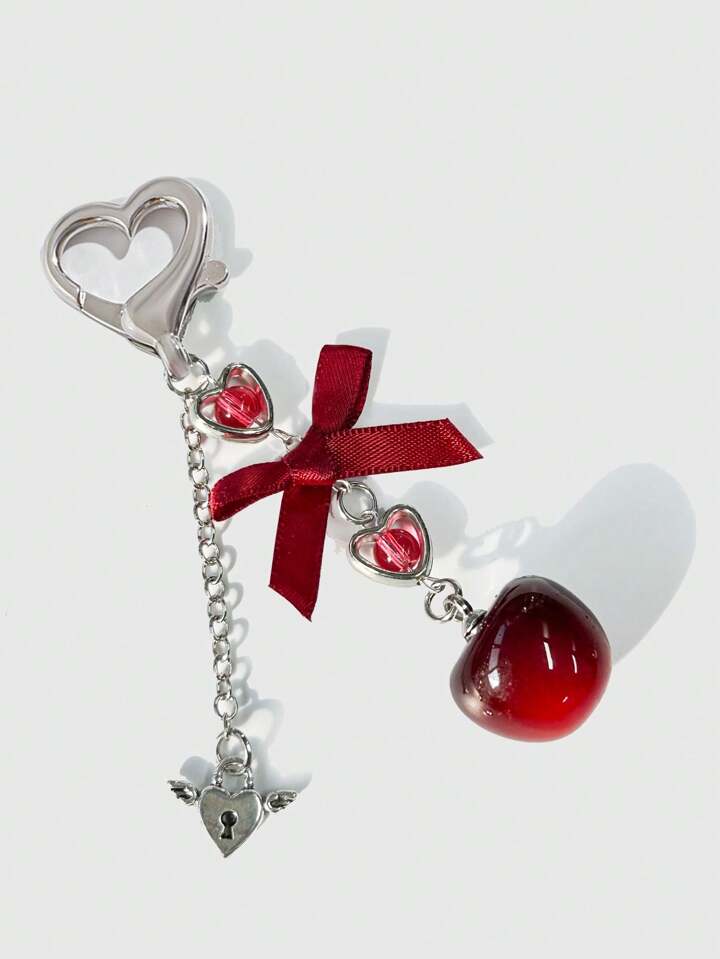 Kawaii 1pc Back To School Red Transparent Cherry Shaped Keychain Keyring Accessory, Cute Boho Design Bag Charm Valentines
