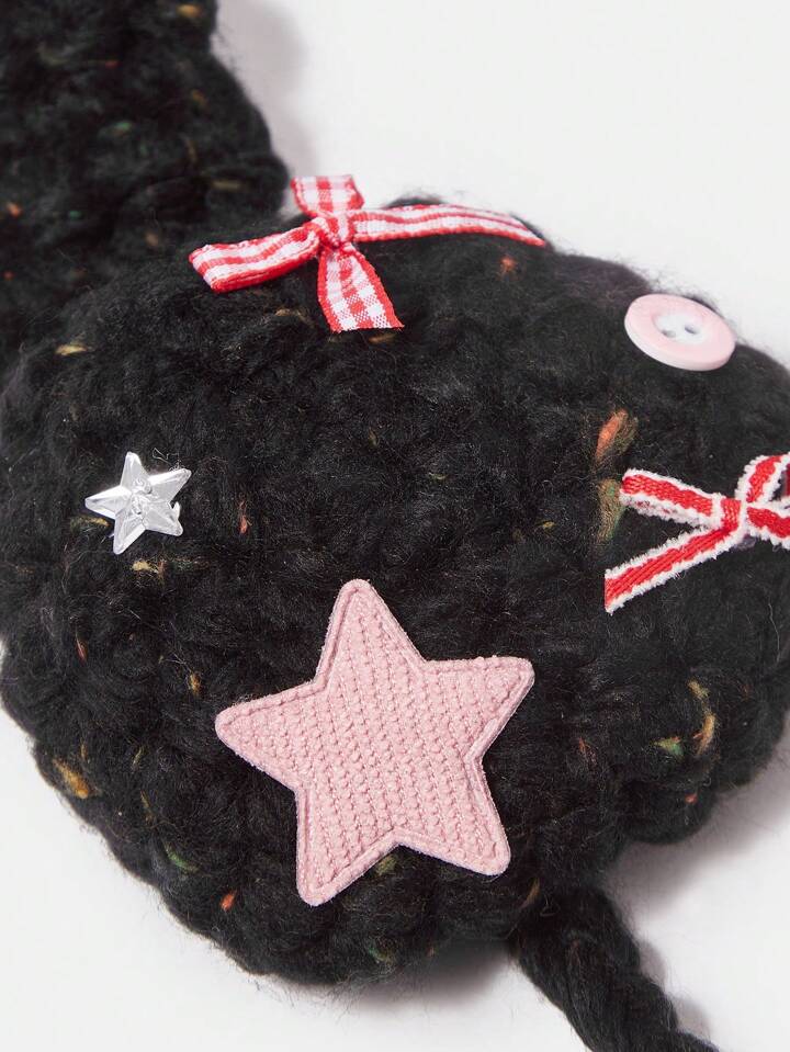 Kawaii 1pc Beige Bohemian Style Knitted Bow, Star & Tassel Decorated Earmuffs, Suitable For Autumn/Winter Wear And Gifts