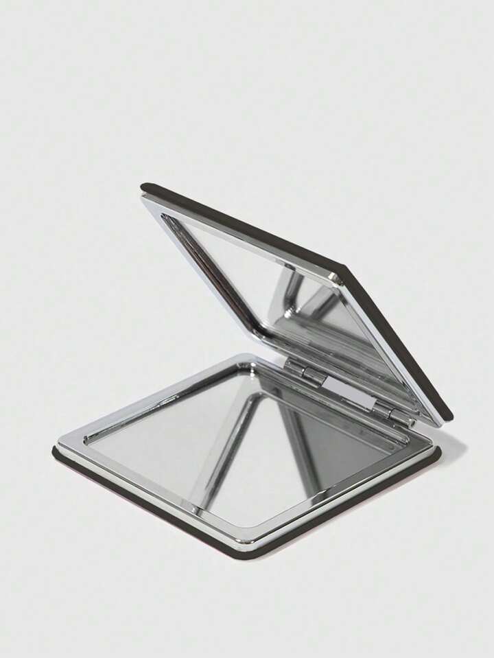 Kawaii 1pc Black Diamond Bow & Heart Print Square Portable Makeup Mirror, Convenient Hand-Held Mirror For Girls, Random Floral Pattern