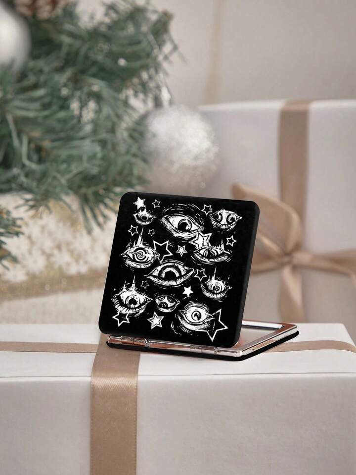 Kawaii 1pc Black Square Makeup Mirror With Dark Magic Eye And Heart Pattern, Portable Handheld Mirror Suitable For Makeup, Travel, Outdoor Use (Pattern Placement Random)