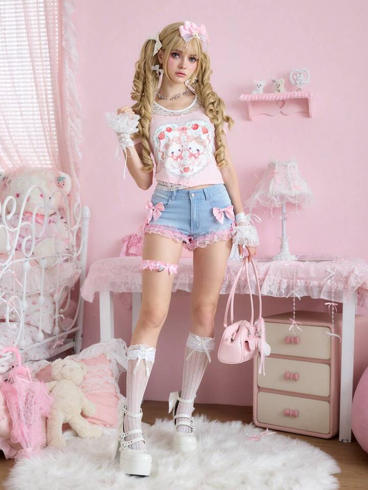 Kawaii 1pc Bow Lace Bell Anklet Choker Necklace Accessory Maid Cos-Play Leg Strap Jewelry For Women