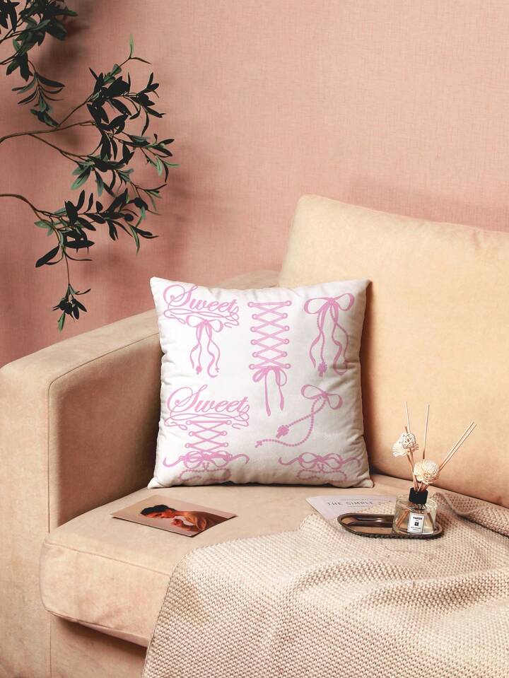 Kawaii 1pc Bowknot Decor Pattern Pillowcase Cover, Plush Printed Square Pillow Sham, Suitable For Living Room, Bedroom, Home Decoration, Sofa Cushion Cover, Car Pillow Cover, All Season Use