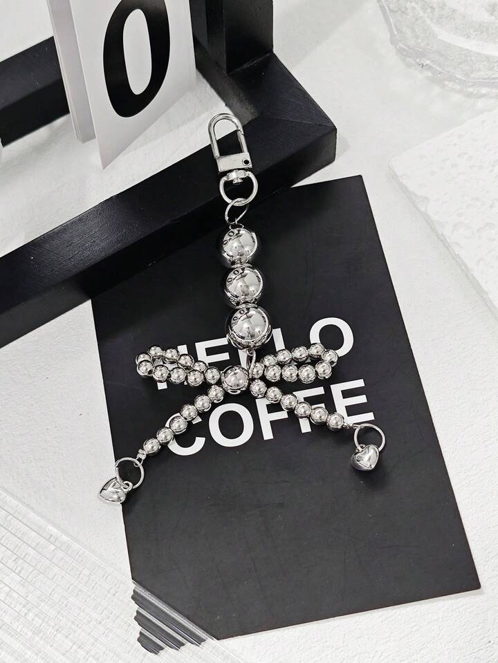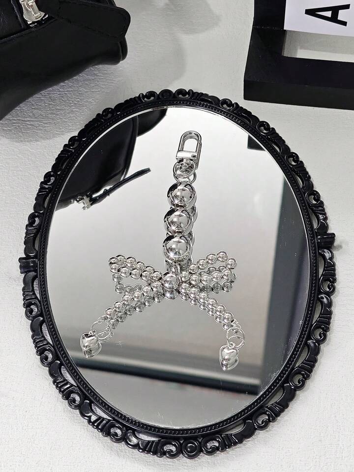 Kawaii 1pc Bowknot With Faux Pearl Heart Charm, Ornament For Bag, Bag Pendant Valentines