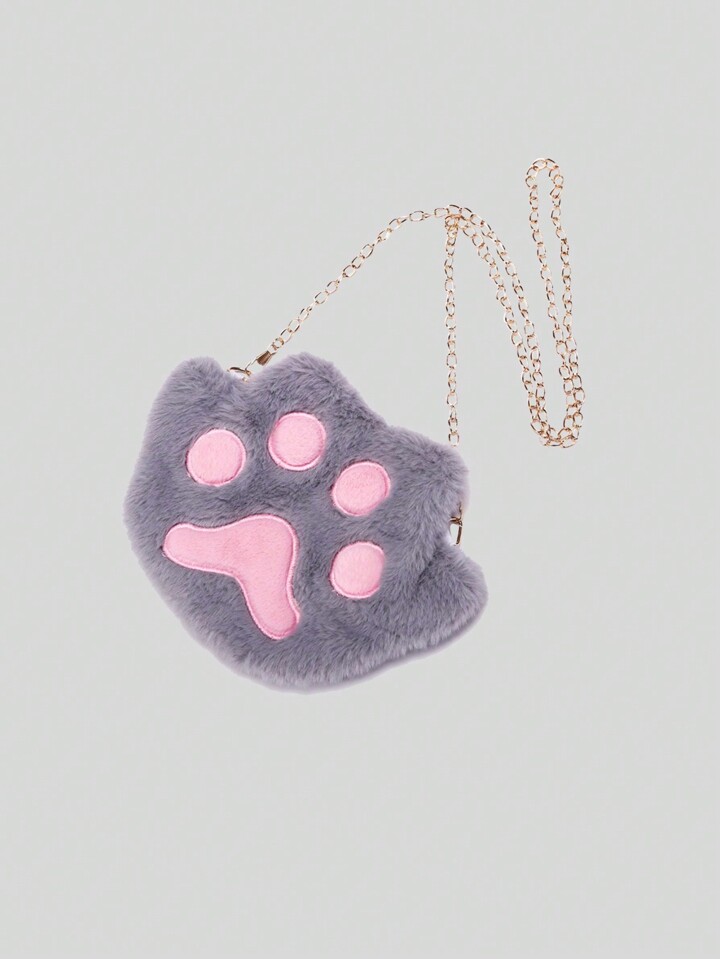 Kawaii 1pc Cartoon Cat Paw Shaped Plush Crossbody Bag