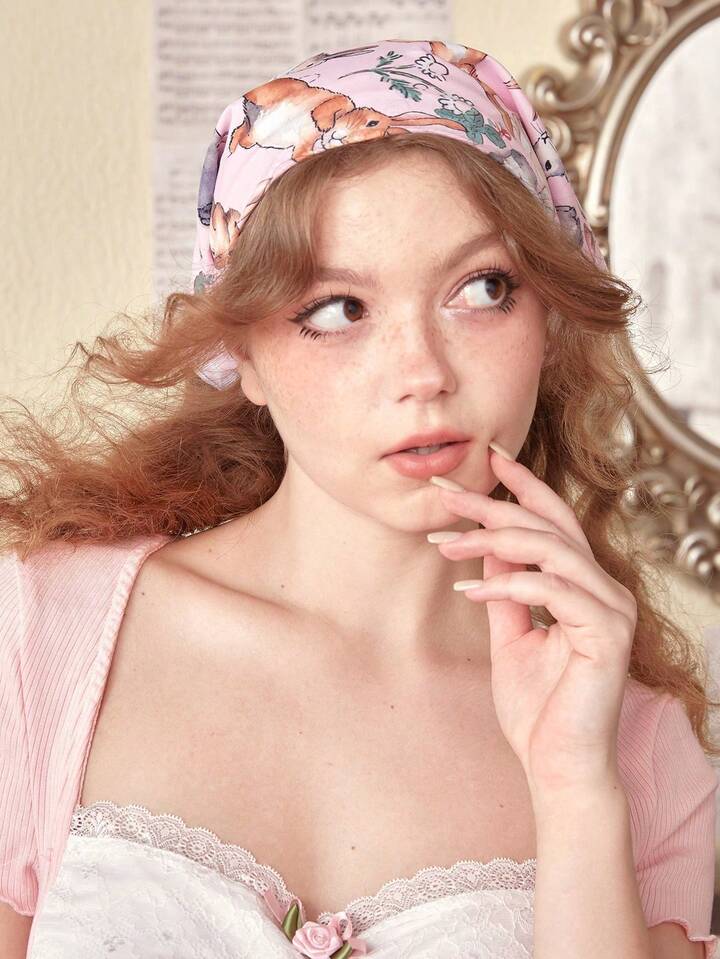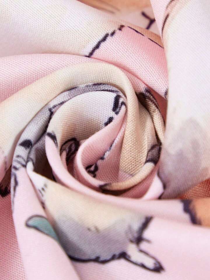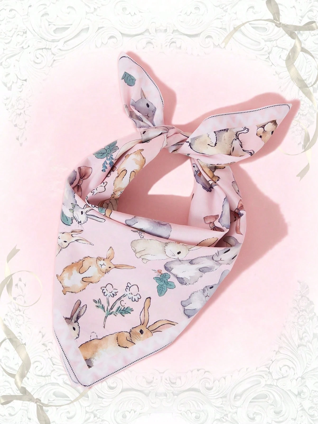 Kawaii 1pc Cartoon Rabbit & Leaf Print Scarf Cute