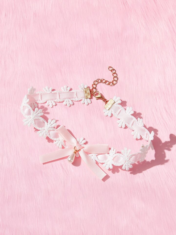Kawaii 1pc Casual Snowflake & Faux Pearl Decor Choker For Women For Daily Decoration