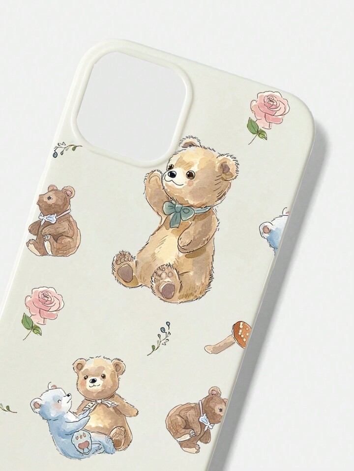 Kawaii 1pc Cute Bear & Rose Design Phone Case Compatible With IPhone 11 12 13 14 15 Pro Max