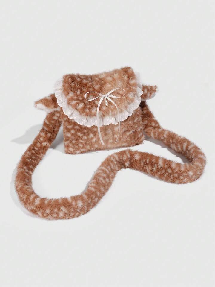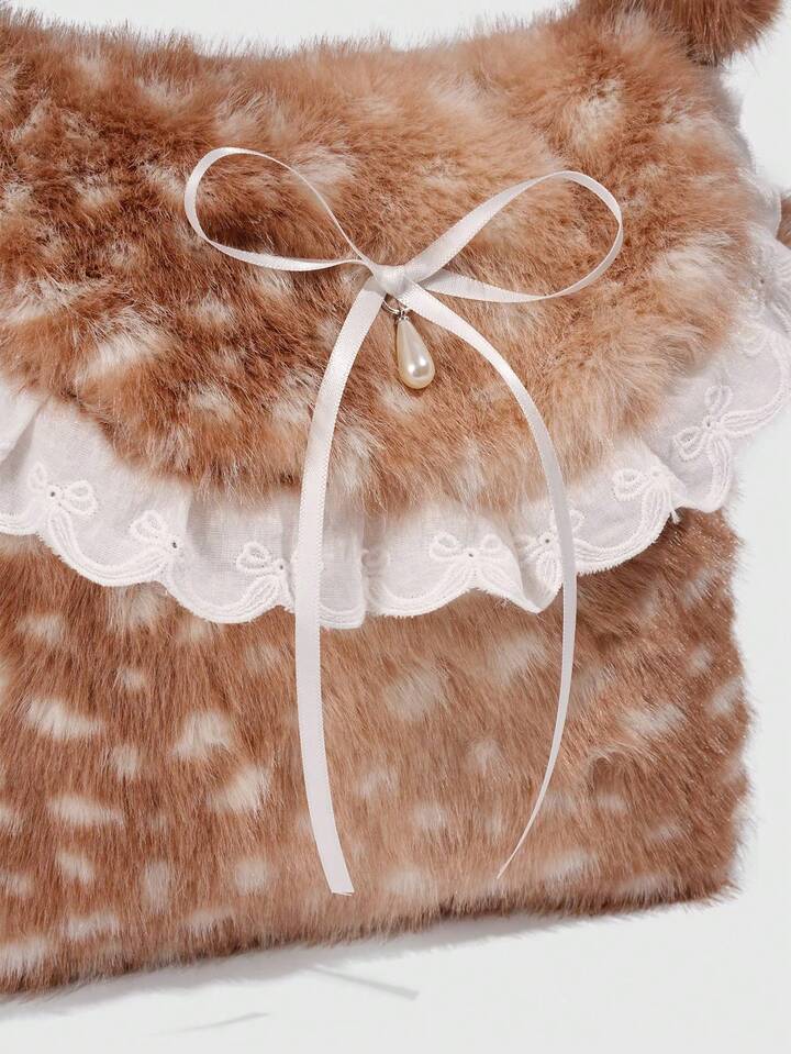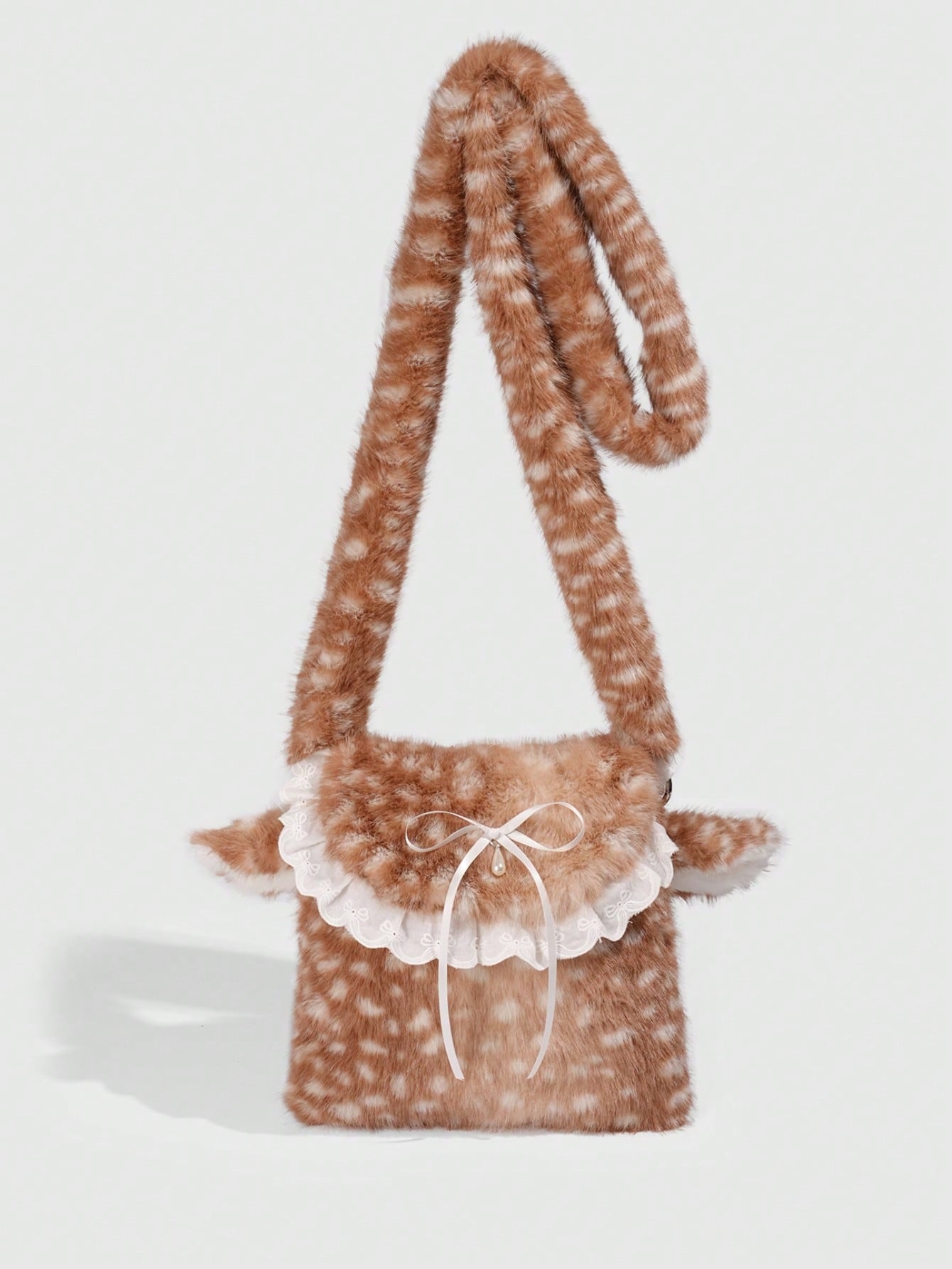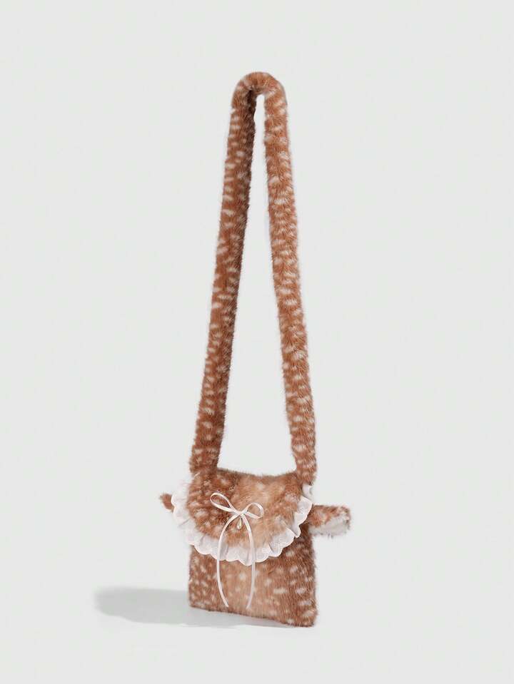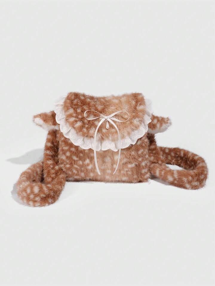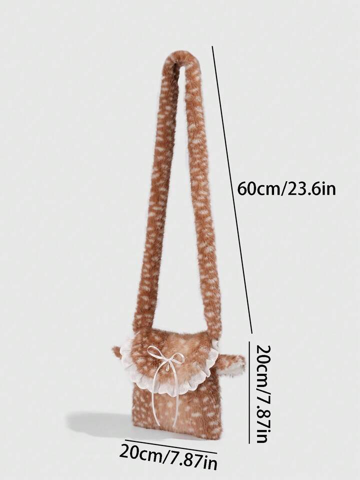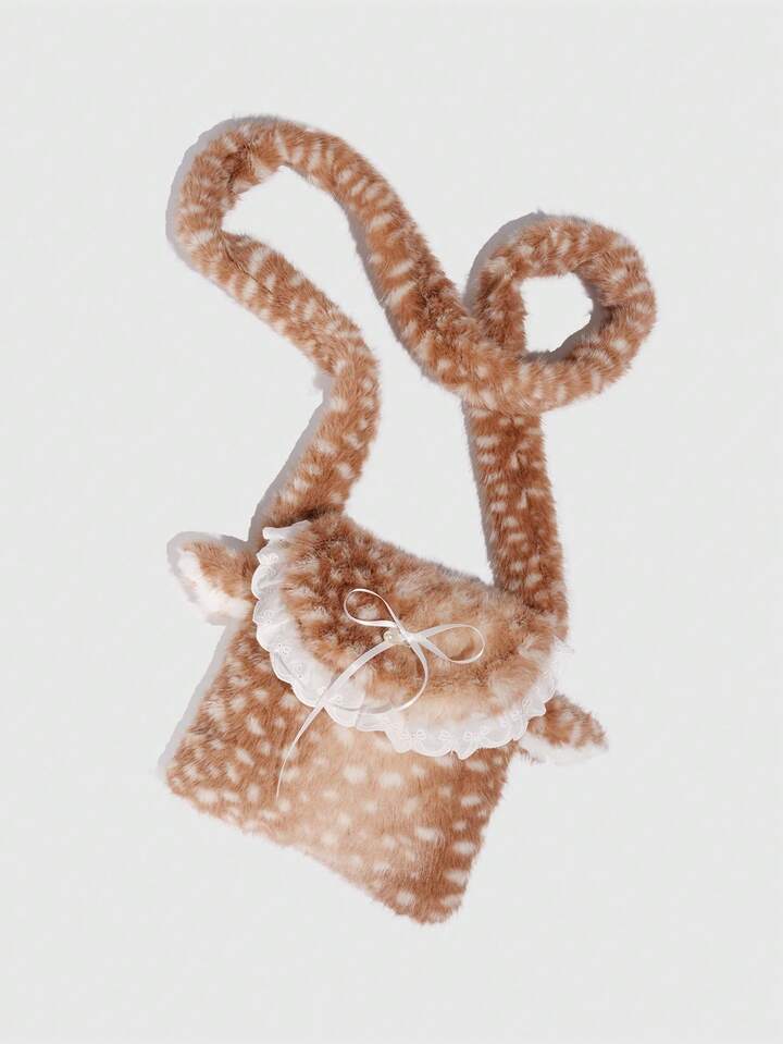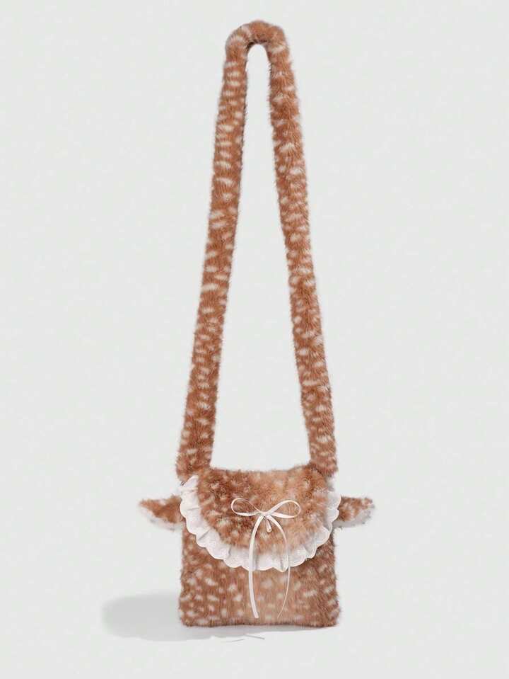 Kawaii 1pc Cute Girl's Plush Shoulder Bag, A Fall And Winter Plush Little Deer Single Shoulder Bag, A School Girl's Autumn And Winter Christmas Deer Bag