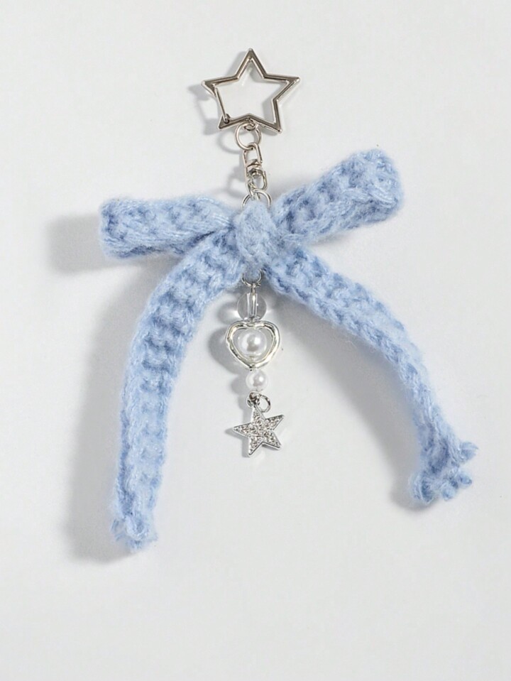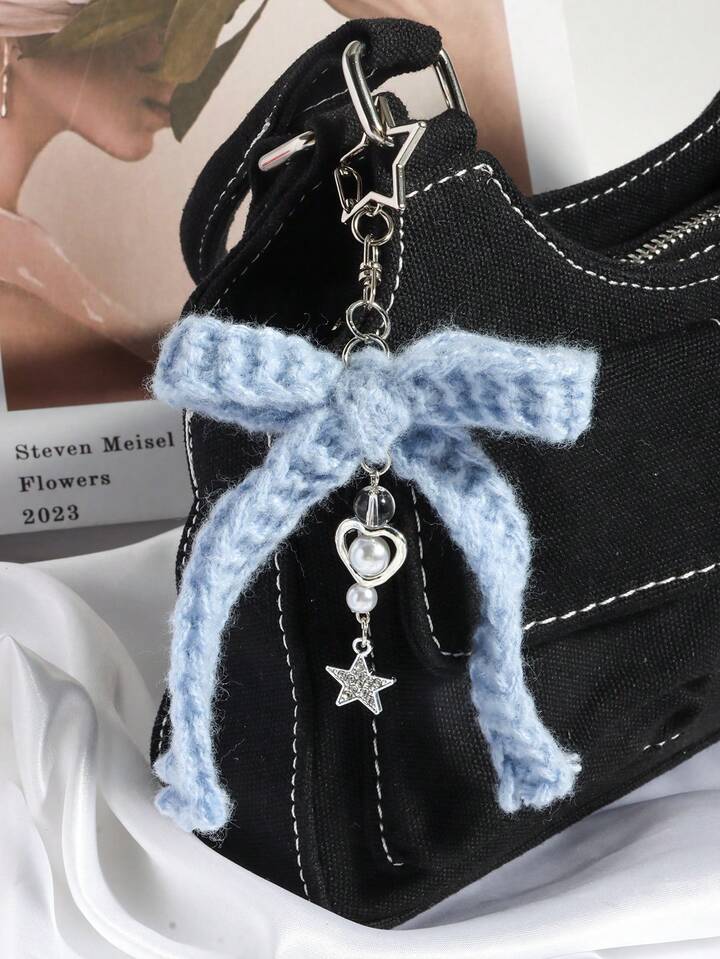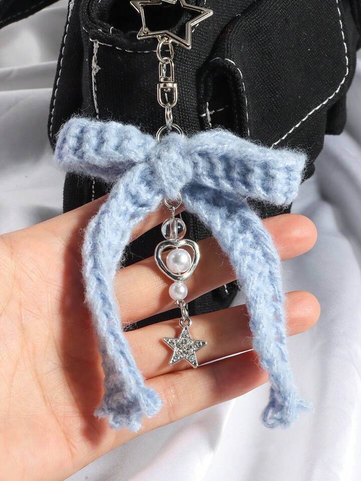 Kawaii 1pc Cute Knitted Bow Blue Bag Charm/Pendant
