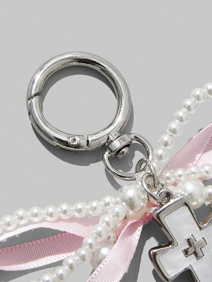 Kawaii 1pc Cute Pink Bow Pearl Keychain Bag Charm