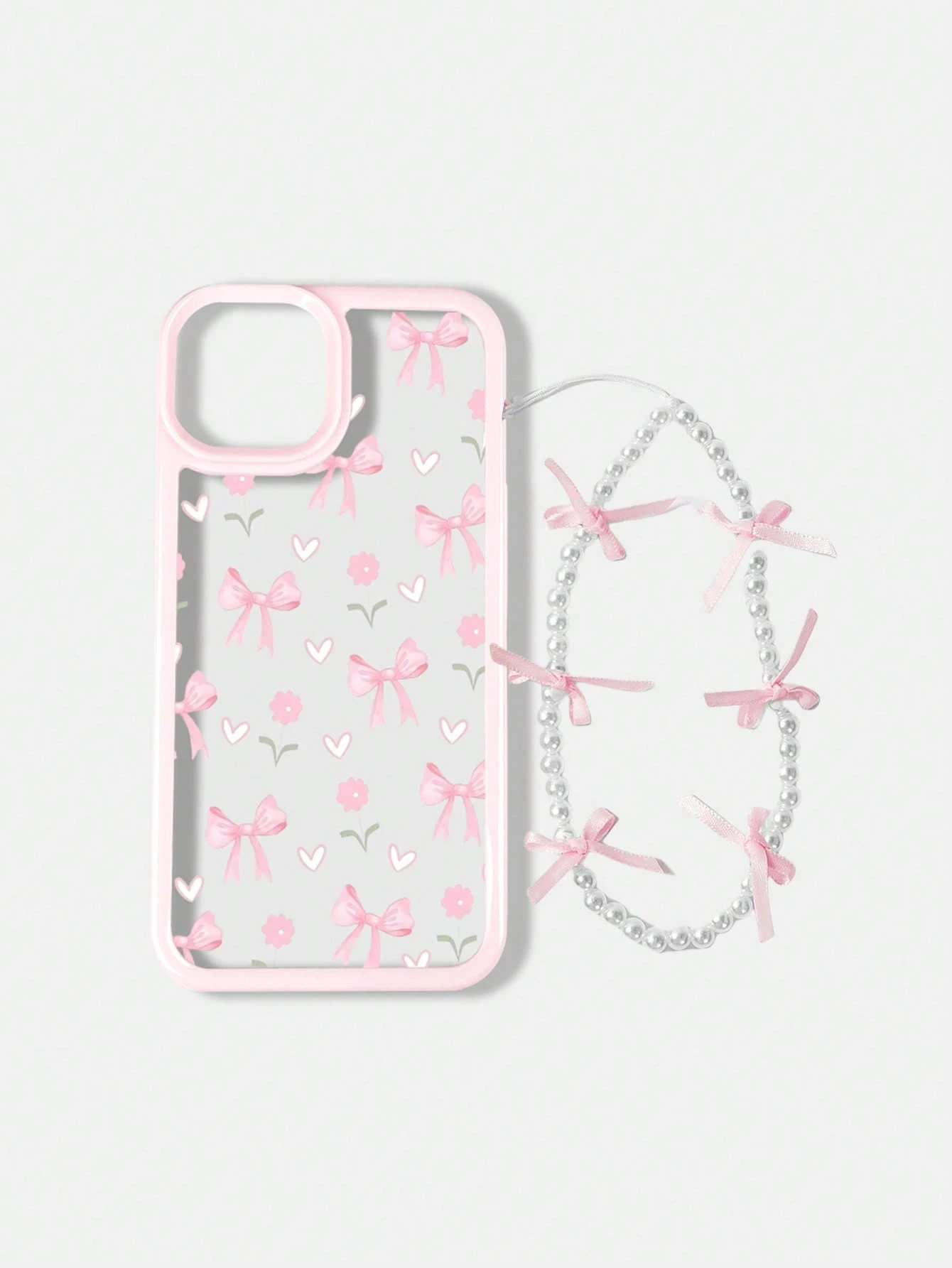 Kawaii 1pc Cute Pink Bow Print With Bow Decor Phone Case, Compatible With IPhone 11 12 13 14 15 Pro Max 16