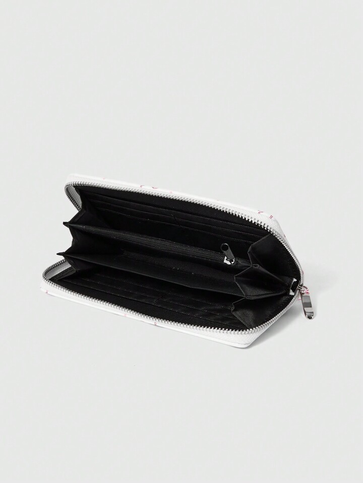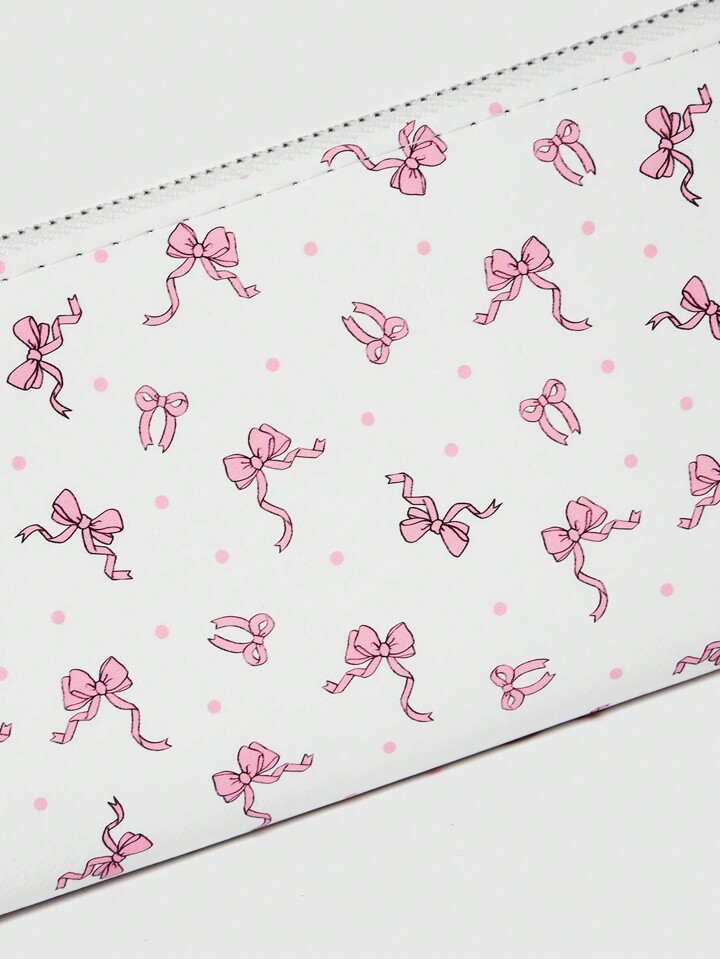 Kawaii 1pc Cute Polka Dot Bow Design Women Long Wallet With Zipper Coin Purse