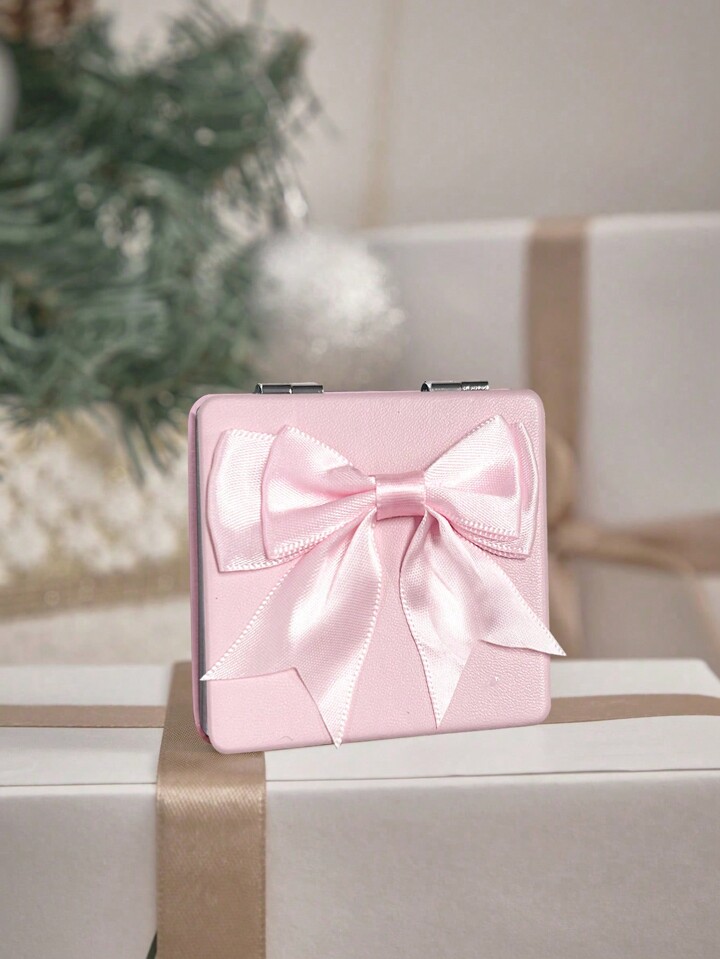 Kawaii 1pc Cute Square Pink PU Butterfly Printed 3D Bow Makeup Mirror, Portable Handheld Mirror For Girls, Suitable For Home, Travel And Outdoor Use