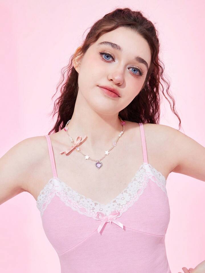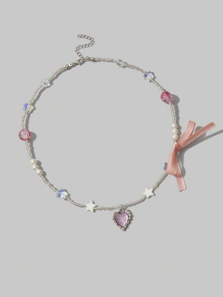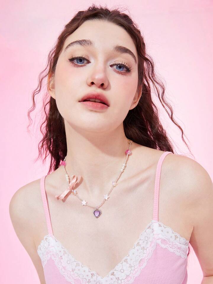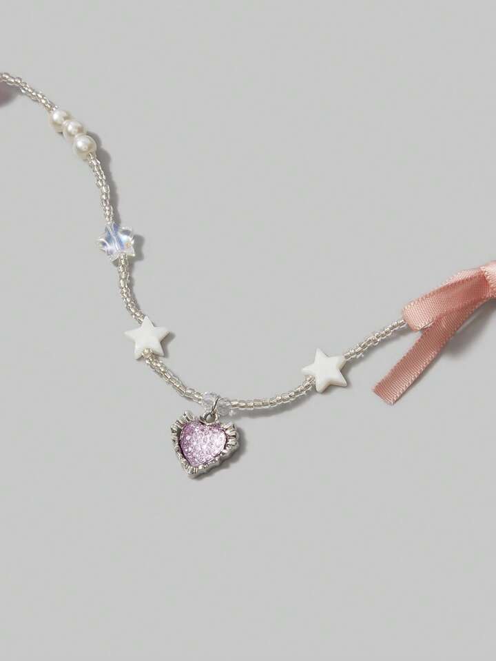 Kawaii 1pc Fashion Iron Alloy Heart & Star Decor Necklace For Women For Daily Decoration