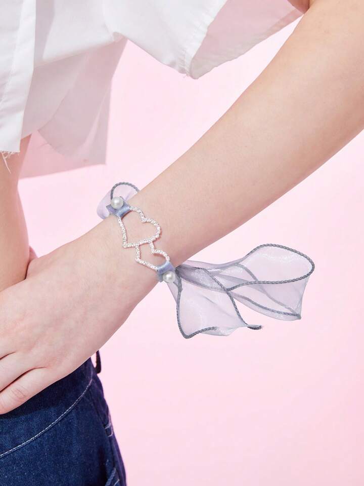 Kawaii 1pc Fashion Rhinestone Heart & Bow Decor Bracelet For Women For Daily Decoration