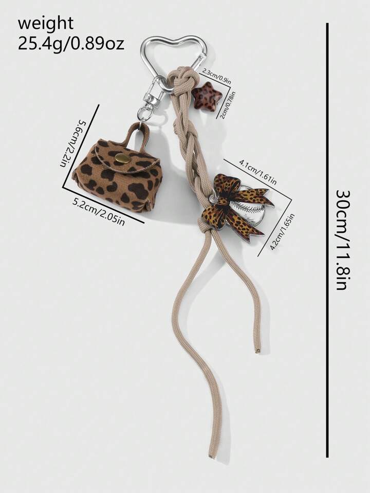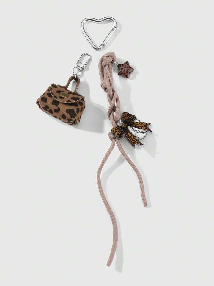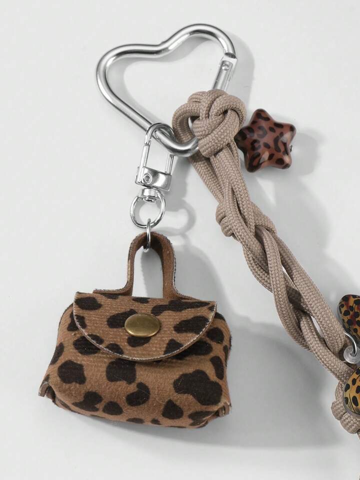 Kawaii 1pc Fashionable Chic Leopard Print Star Mini Coin Purse, Acrylic Bowknot Carabiner Keychain, Suitable For Women, Daily Wear Or Gift