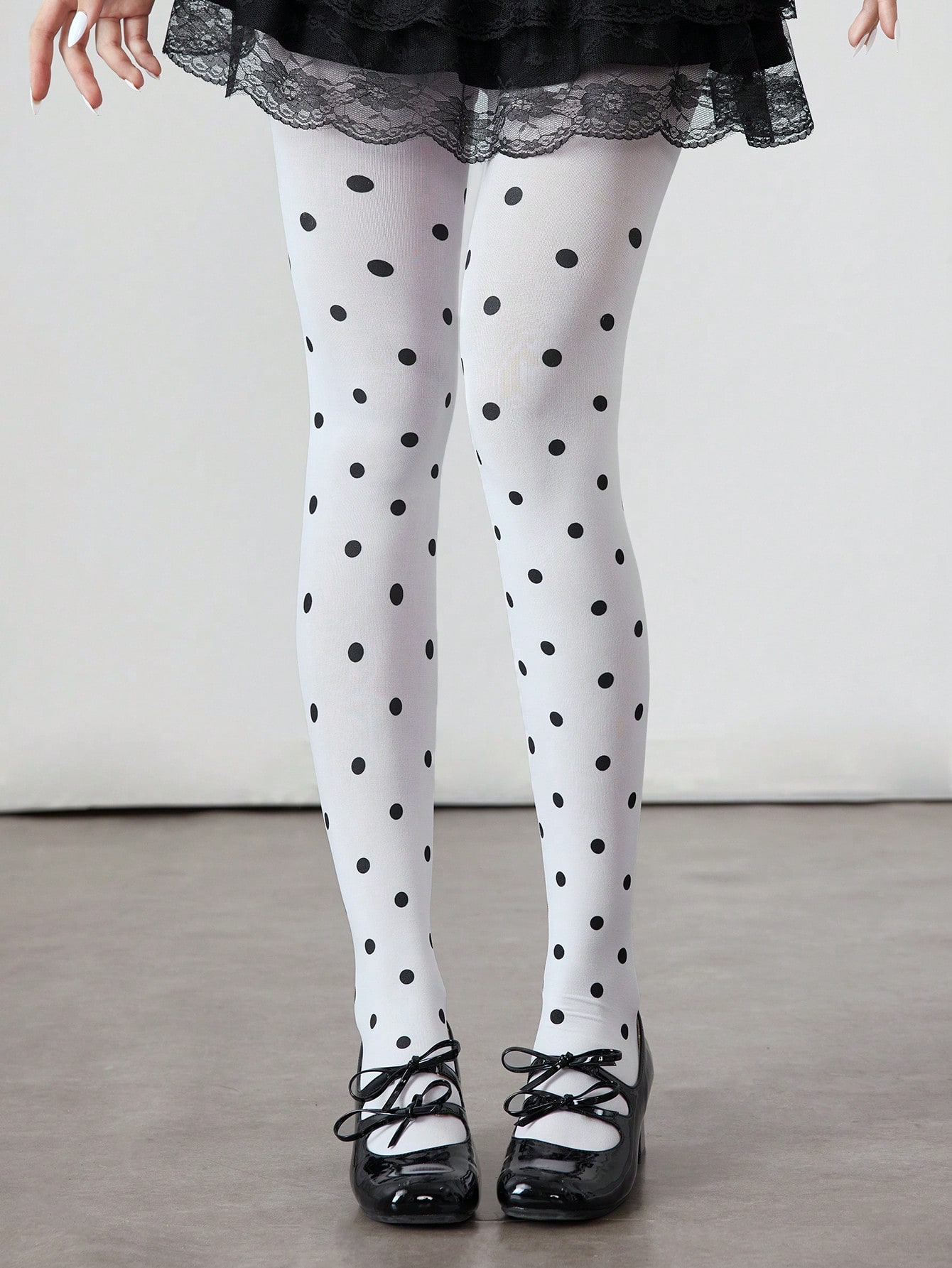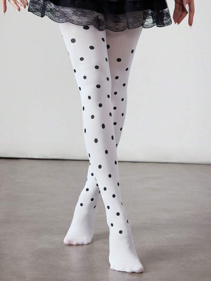 Kawaii 1pc Fashionable Polka Dot Sheer White Stockings, Ladies Thin Summer Pantyhose/Tights/Leggings To Conceal Leg