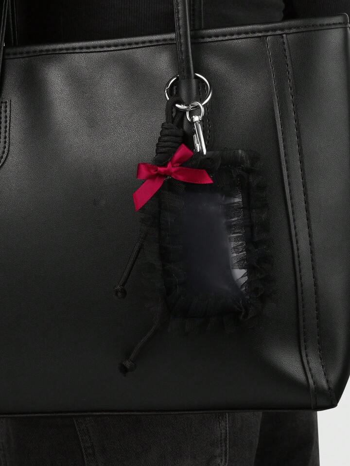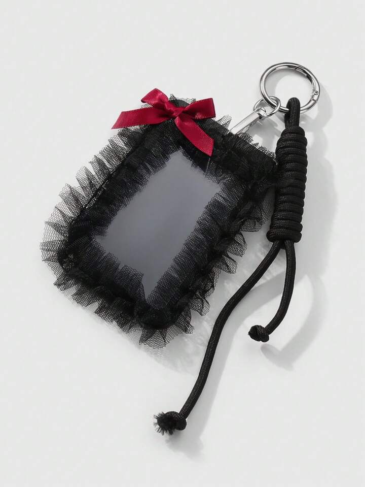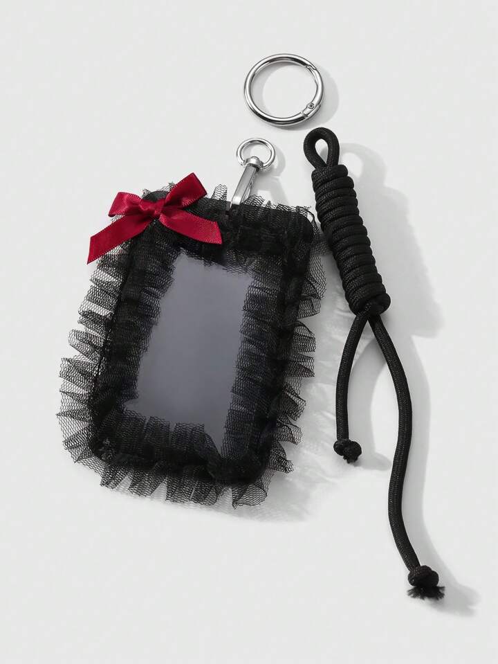 Kawaii 1pc Goth Style Black Lace Edge, Red Ribbon Bow Adjustable Lanyard, Personalized Fashion Accessory, Suitable For Office Workers, Students, Daily Wear, Holiday Gift