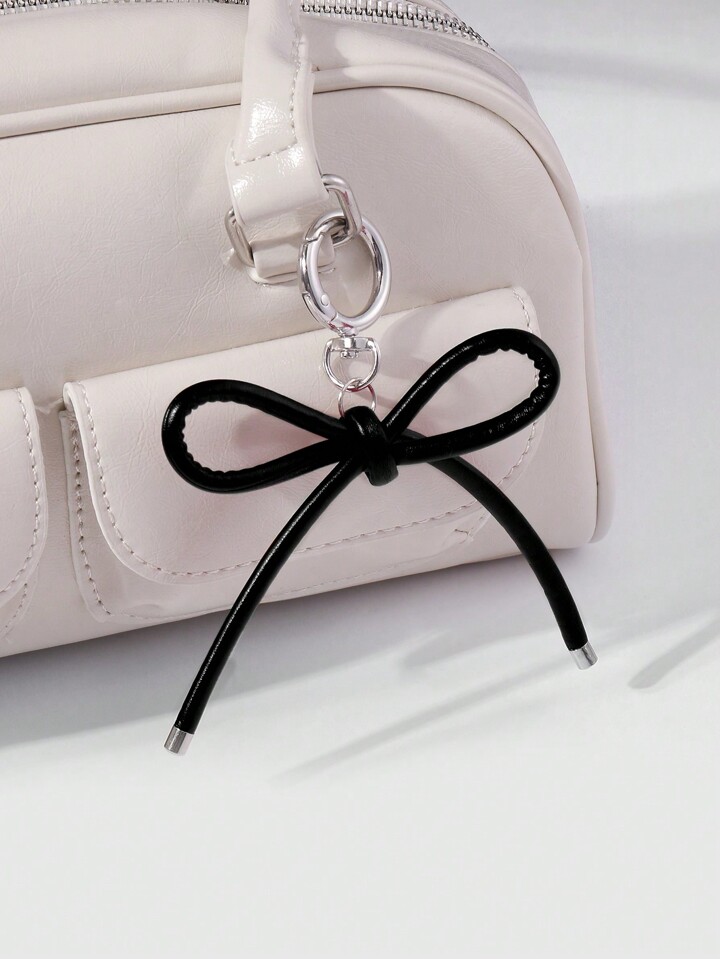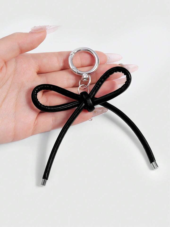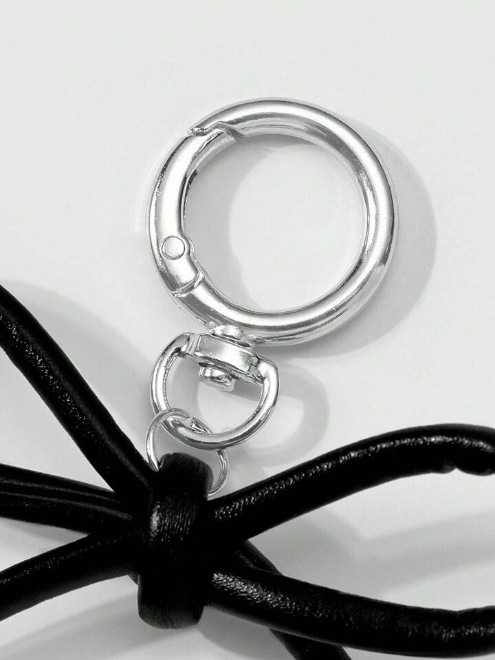 Kawaii 1pc Goth Style Black Leather Bowknot Keychain, Korean Fashion, Suitable For Women And Girls As Daily Accessory Or Festival Gift Valentines