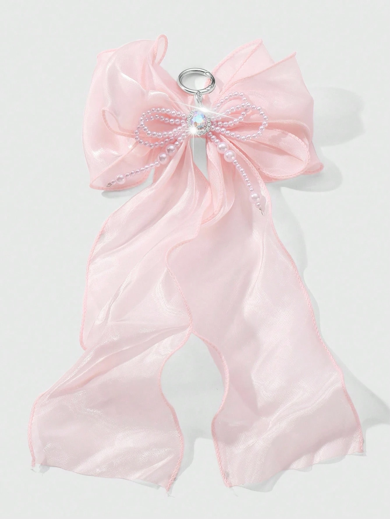 Kawaii 1pc Handmade Beaded Keychain, Elegant Girly Style With Pink Faux Pearl, Rhinestone & Mesh Bow Decor, Versatile Accessory, Suitable For Women, Girls, Gift