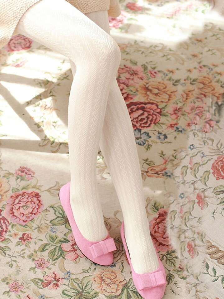 Kawaii 1pc Heart Pattern Velvet Pantyhose Suitable For Women's Daily Wear