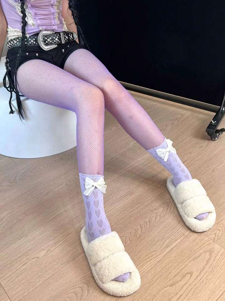 Kawaii 1pc High Elasticity Fishnet Stockings With Sparkling Rhinestones For Women, Tights/Leggings/Stockings