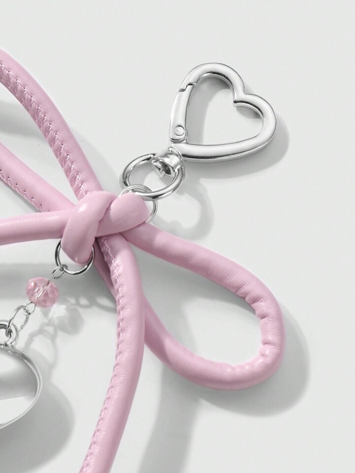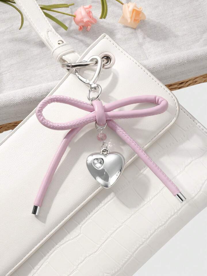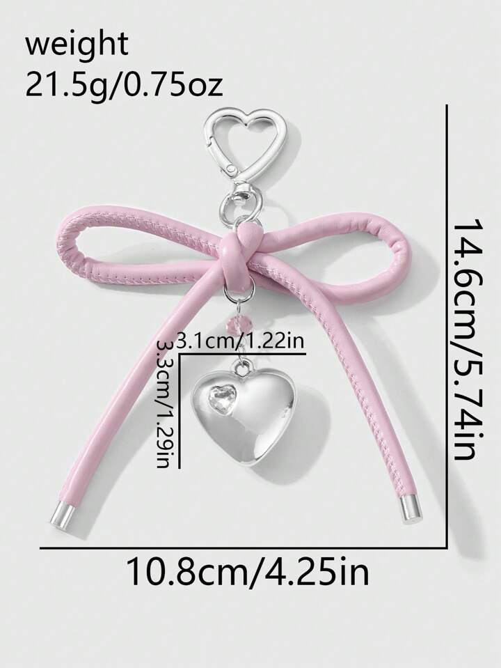 Kawaii 1pc INS Korean Chic Elegant Bowknot Faux Crystal Rhinestone CCB Heart Keychain Pendant, Fashionable Accessory For Girls And Women, Gift For Daily Wear Or Festivals