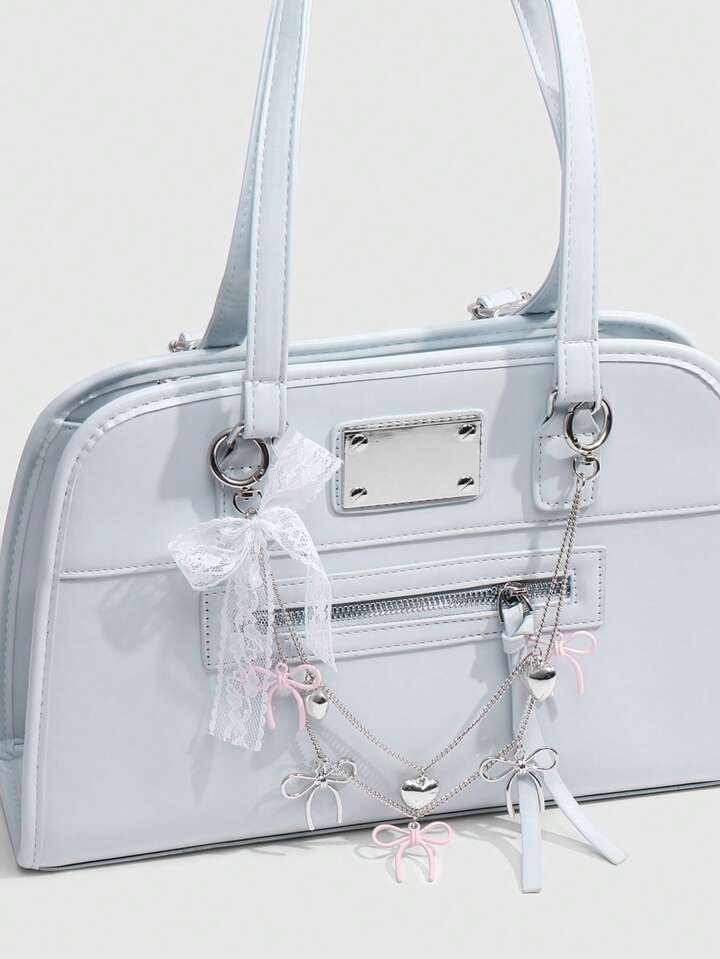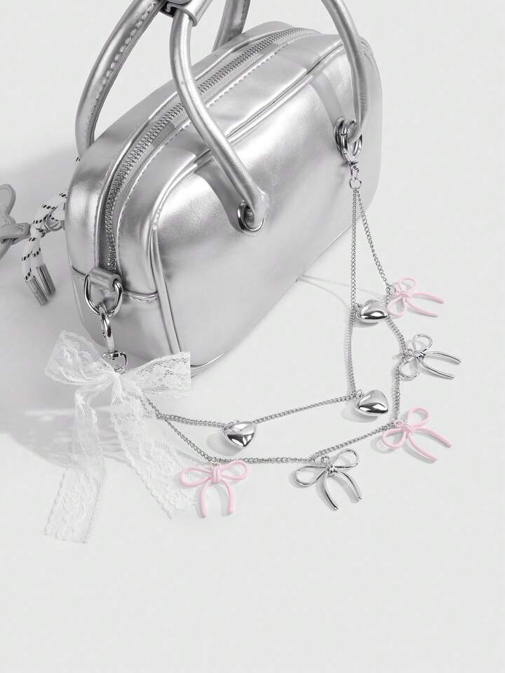 Kawaii 1pc Ins Minimalist Delicate Multi-Layer Silver CCB Heart & Lace Bow Pendant, Versatile High-End DIY Keychain Or Bag Decoration, Suitable For Women, Gift