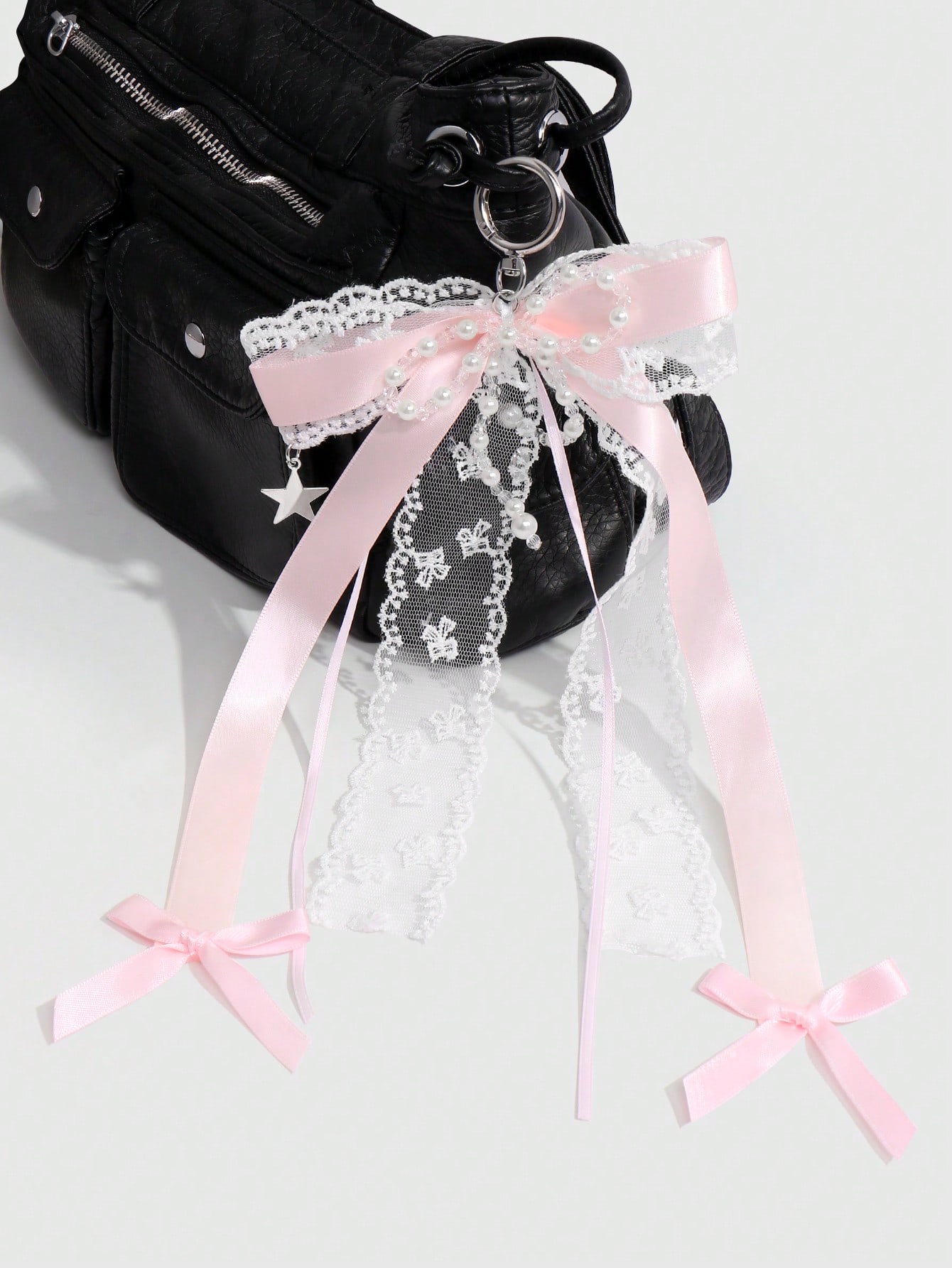 Kawaii 1pc Ins-Style Delicate Multifunctional Fashionable Sweet High-End Handmade Beaded Faux Pearl, Faux Crystal, Tulle Ribbon, Bow, Star DIY Keychain, Suitable As Daily Accessory Or Holiday Gift For Women