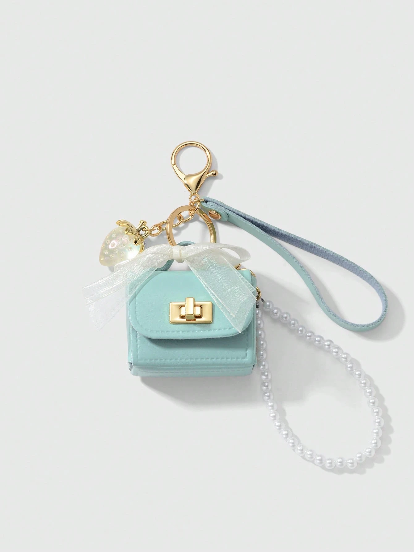 Kawaii 1pc Ins-Style Fashion Handmade Pearl Resin Strawberry Pendant Decorated With Netting Bow Leather Button, Suitable For Women/Girls For Daily Wear Or Holiday Gifts Decoration, Keychain, Bag Accessory