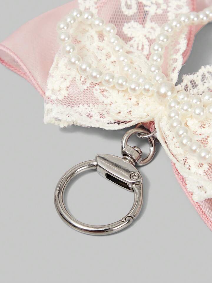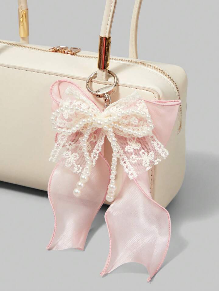 Kawaii 1pc Ins Style French Black Lace Bow Pearl Keychain Bag Charm, Cute And Popular Design, Versatile Accessory Suitable For Travel, Gift