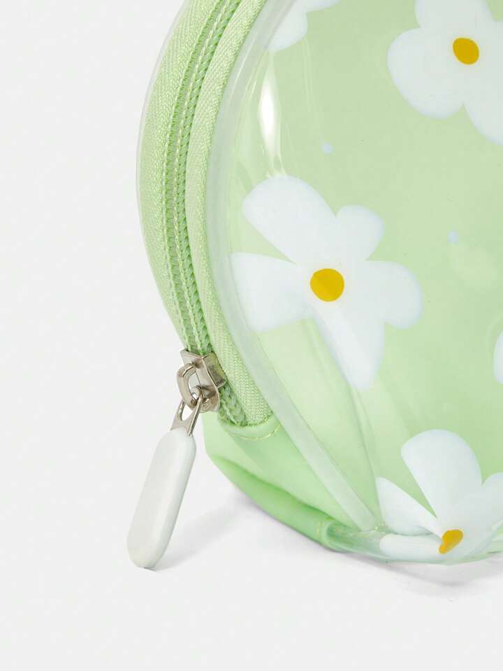 Kawaii 1pc Jelly Makeup Bag,Cute Floral Print Roundtop Bag For Traveling