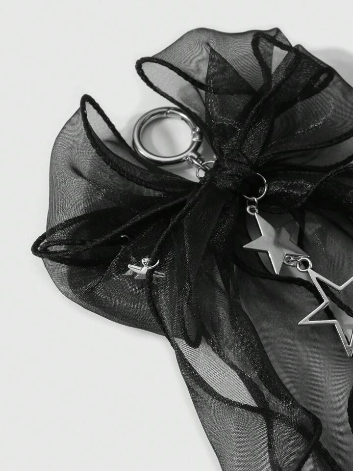 Kawaii 1pc Korean Style Fashion Gothic Aesthetic Mesh Lace Double Bowknot Hollow Star Pendant Keychain, Suitable For Women Daily Wear, Gift