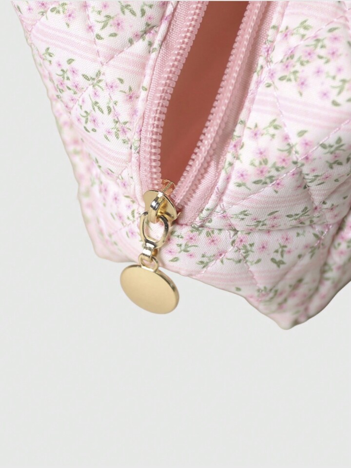 Kawaii 1pc Large Capacity Portable Ditsy Flower Printed Cosmetic Bag