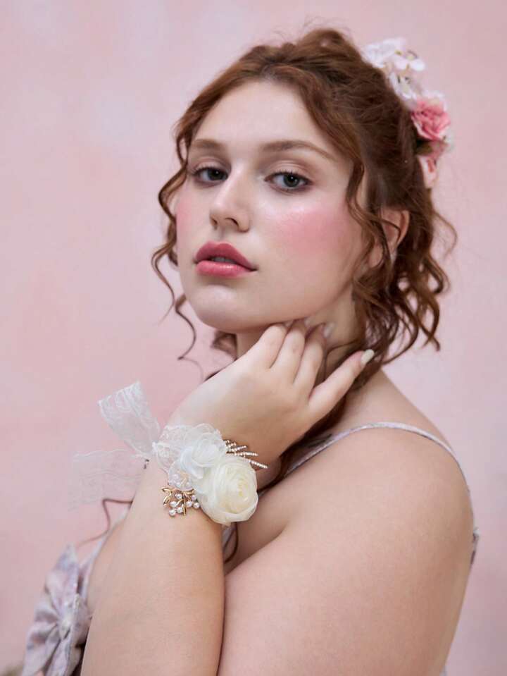 Kawaii 1pc Lovely Palace Style Rose Pearl Element Bracelet, Sweet Retro High-End Rhinestone Lace Strap Bracelet, Versatile High-End Creative Elegant Bracelet