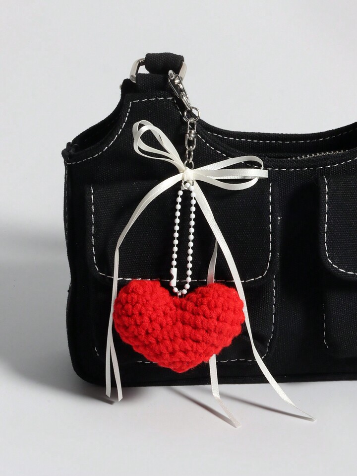 Kawaii 1pc Lovely Red Heart Shaped Bag Charm, Valentine's Day Gift Keychain