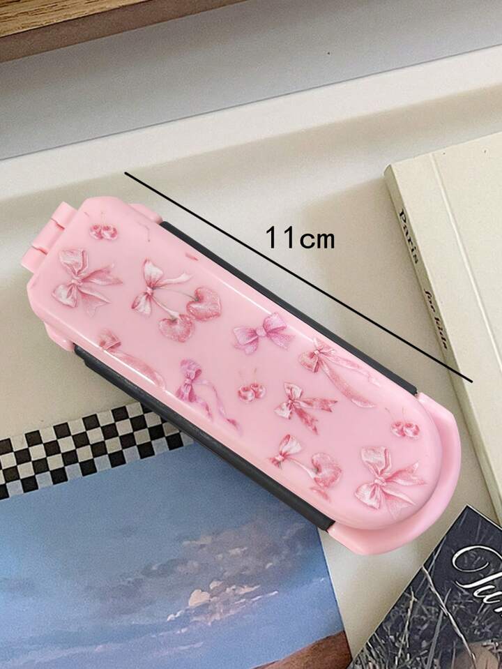 Kawaii 1pc Pink Bow Back To School Folding Comb With Air Cushion & Mirror, Portable