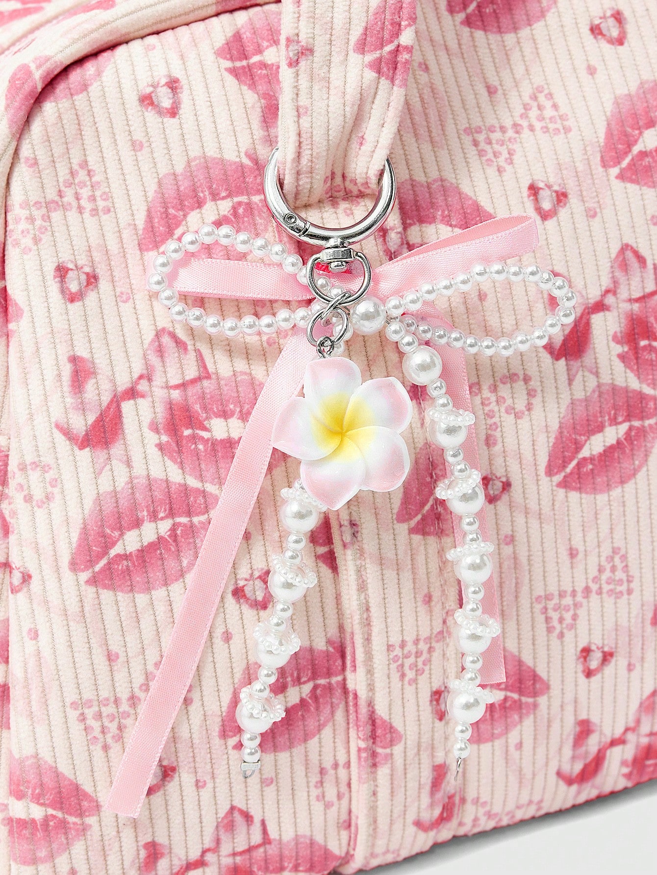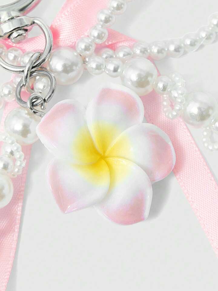 Kawaii 1pc Pink Bow Pearl Cross Keychain For Y2K Style Bag Charm