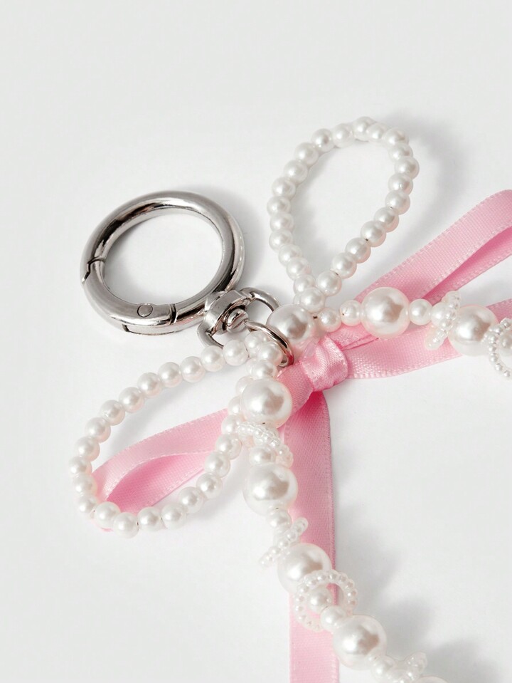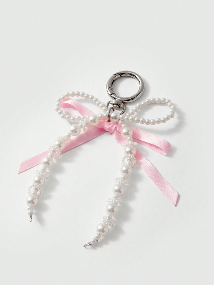 Kawaii 1pc Pink Bow & Pearl Key Chain Purse Pendant