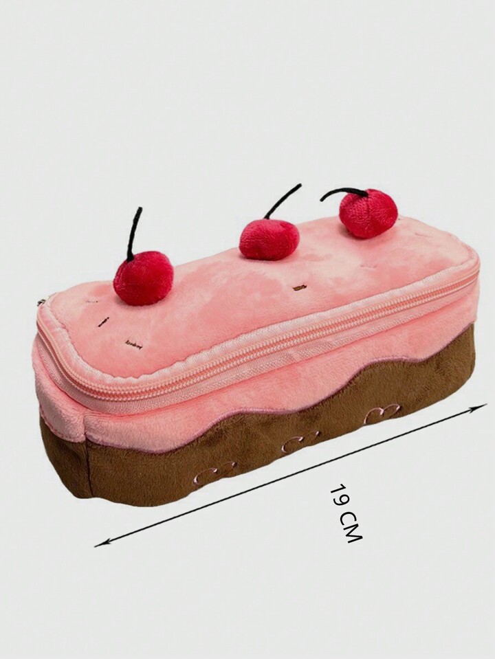 Kawaii 1pc Plush Cherry Cake Pencil Case (Random Dot Position), School,Back To School,School Supplies