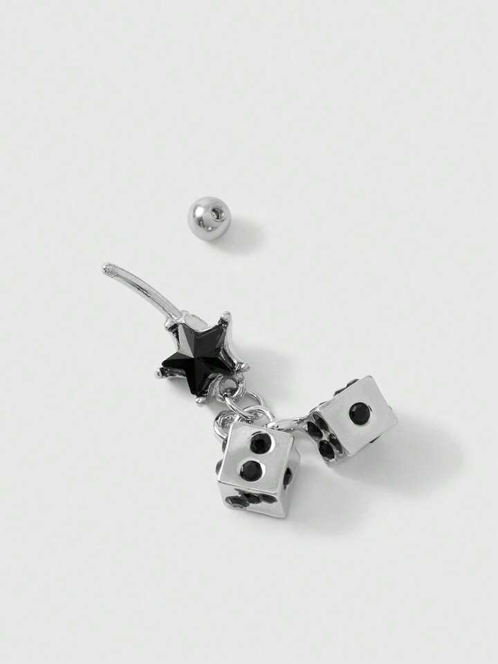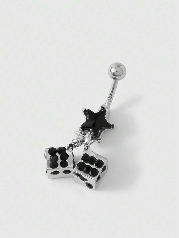 Kawaii 1pc Stainless Steel Rhinestone Five-Pointed Star Dice Pendant Women Belly Button Ring