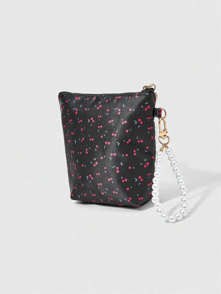 Kawaii 1pc White Lace Cute Cherry Pattern Large Capacity Portable Cosmetic Bag, #1510468