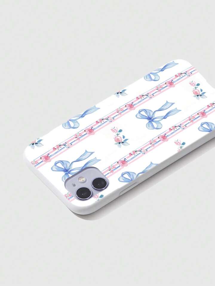 Kawaii 1pc White Lace Rose & Bowknot Design Apple Phone Case Compatible With IPhone 11 12 13 14 15 Pro Max