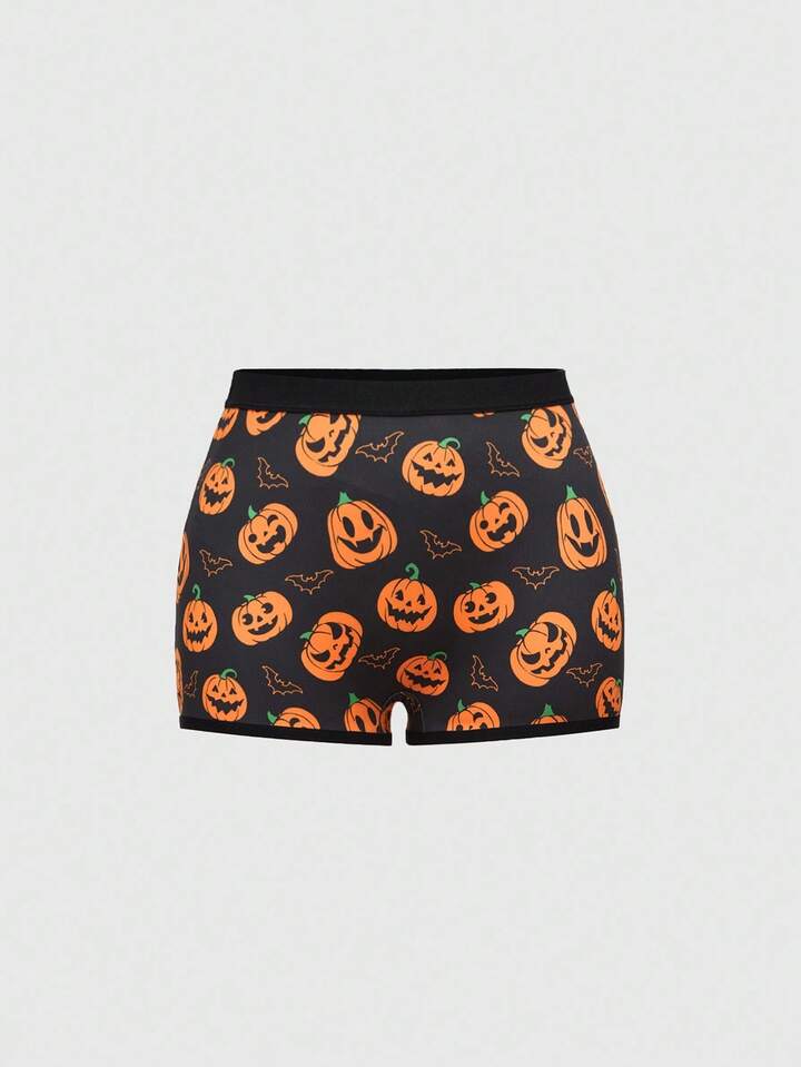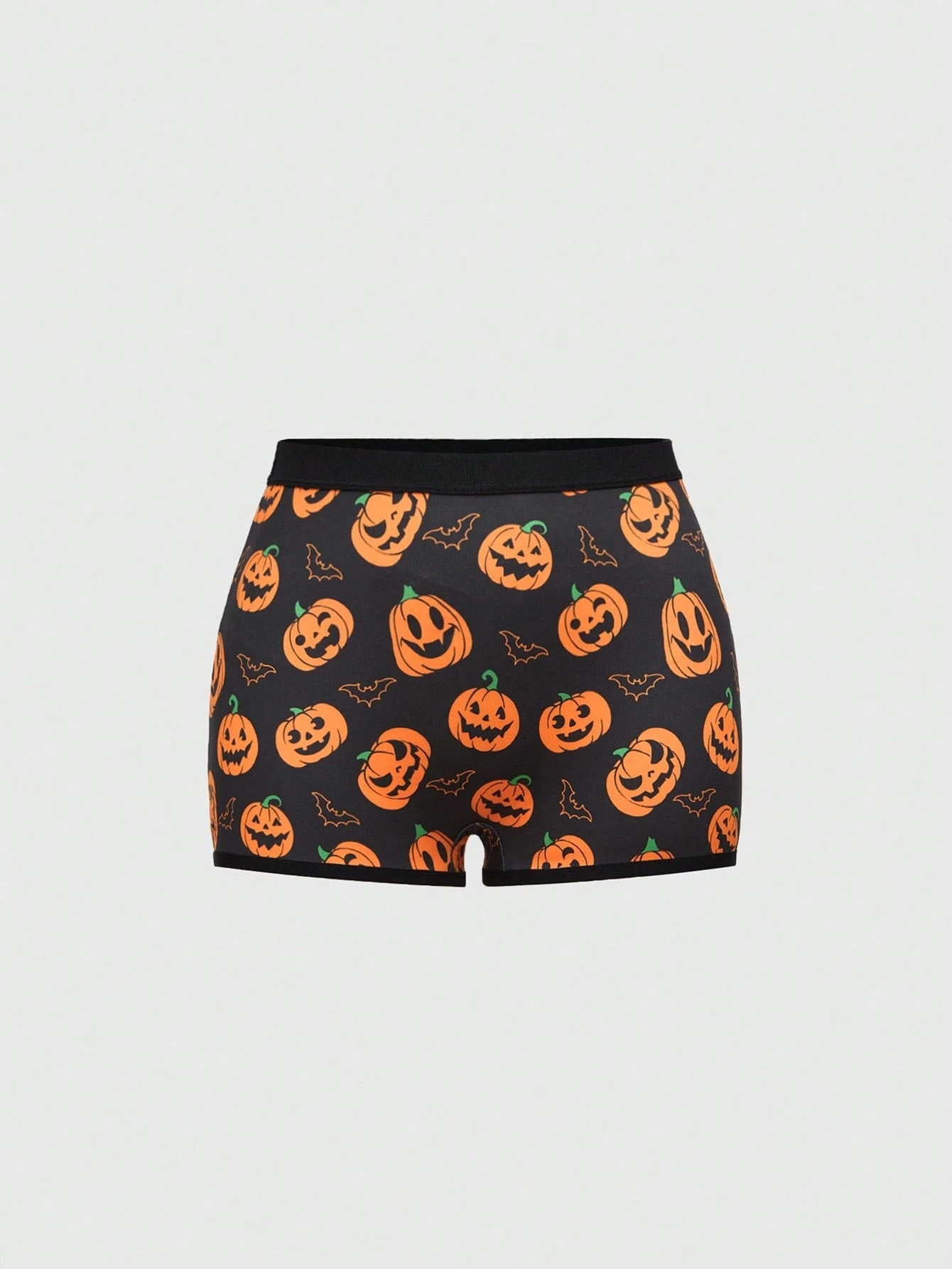 Kawaii 1pc Women Halloween Pumpkin & Bat Graphic Panties