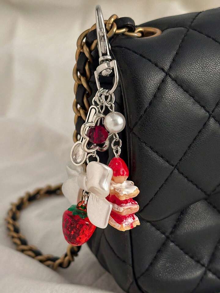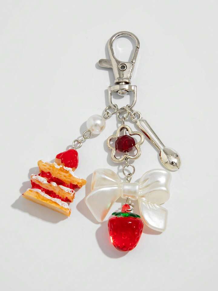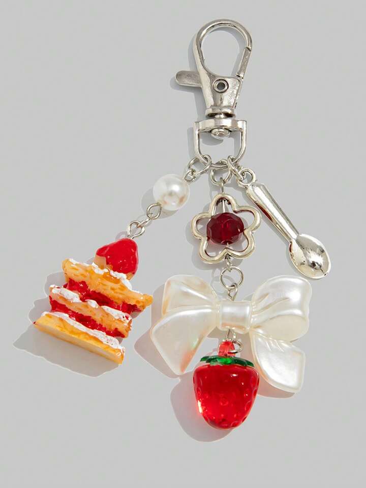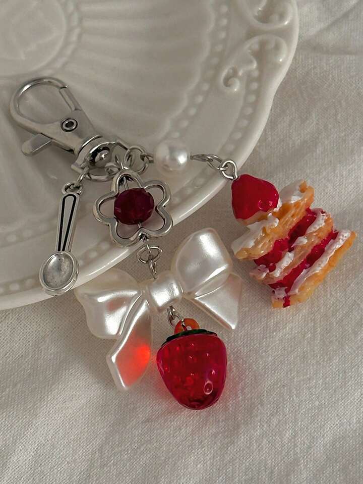 Kawaii 1pc Women's Creative Strawberry Cake Tassel Keychain Decoration