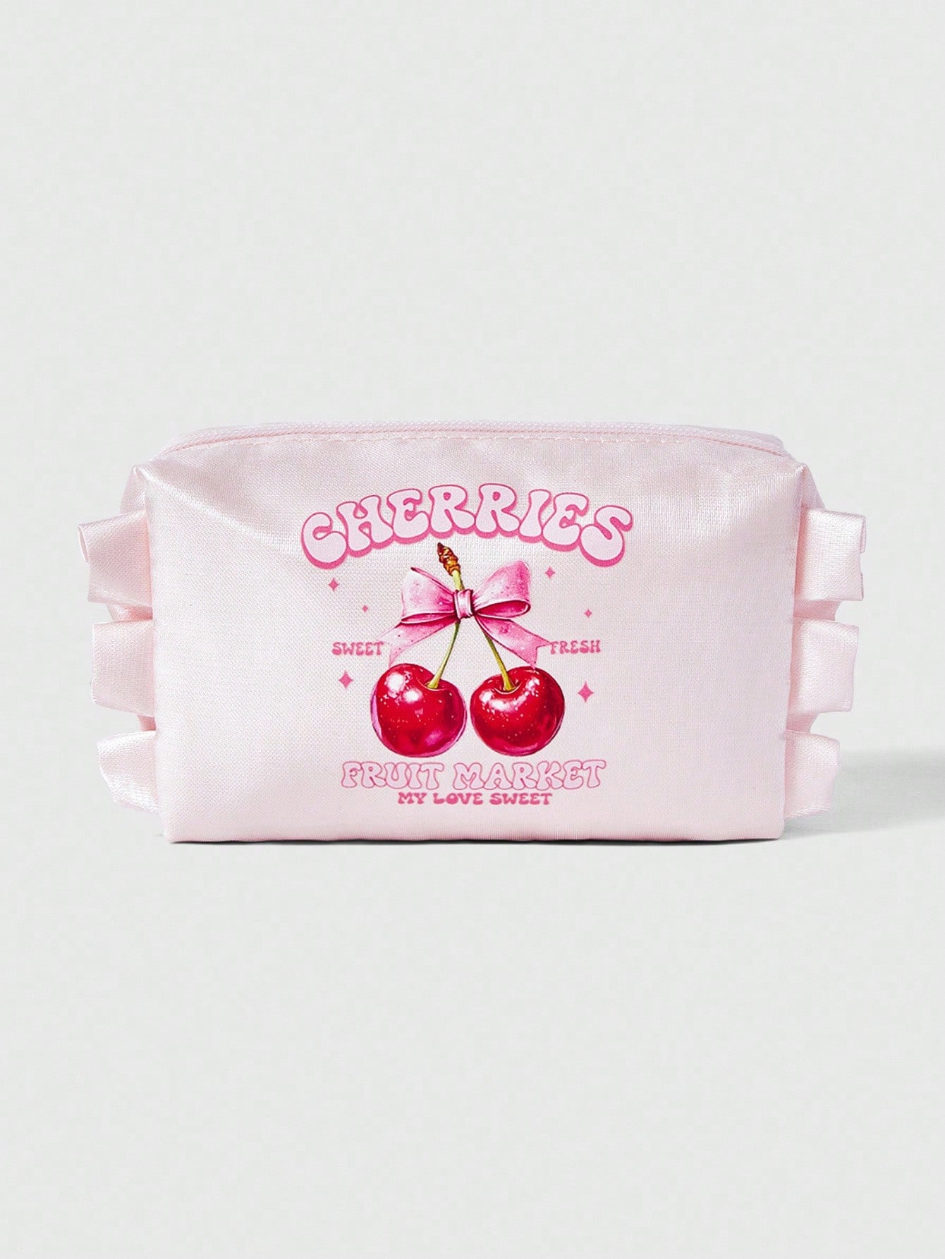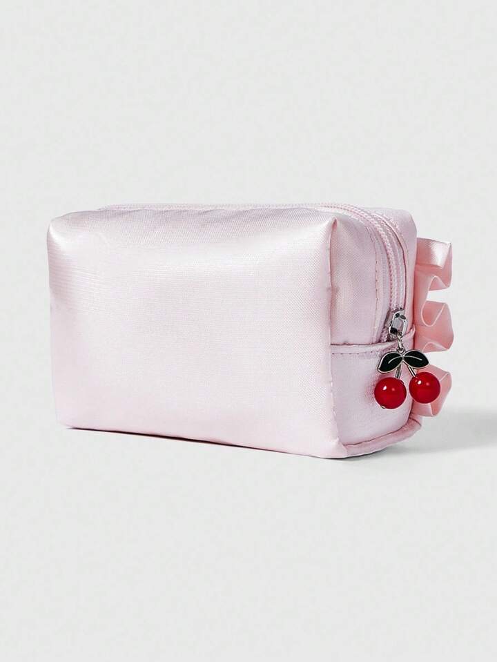 Kawaii 1pc Women's Cute Pink Cherry Bow Portable Cosmetic Bag